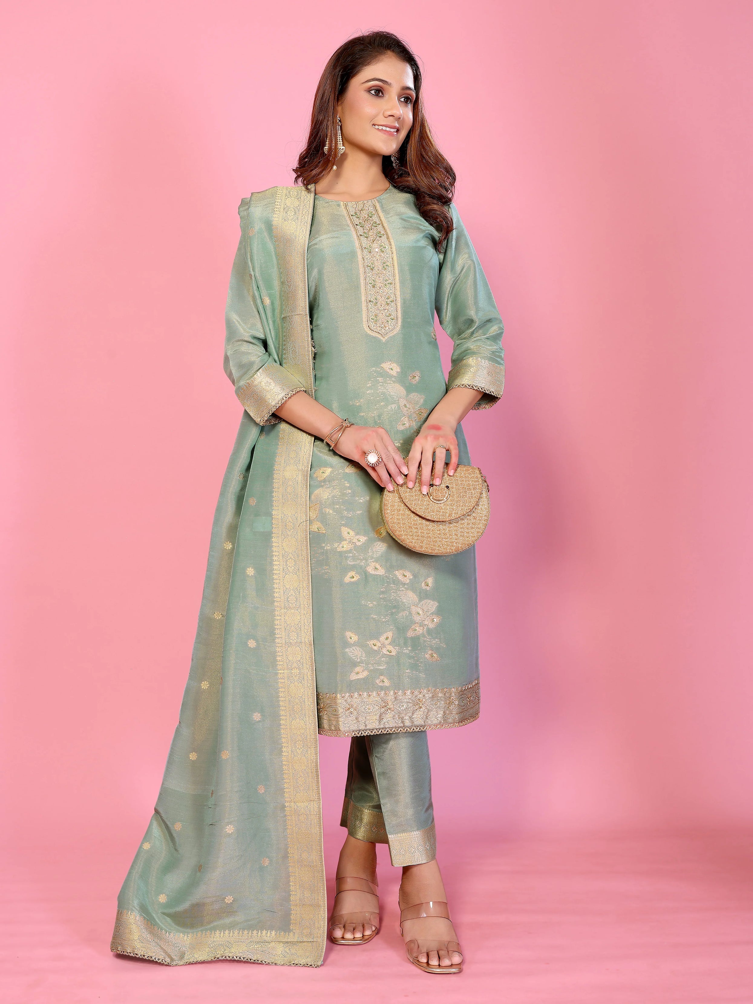 Pastel Serenity Muslin tissue Silk Ensemble HandWork suit set